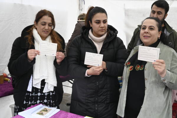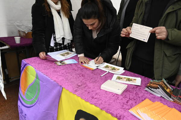 پس از سخنرانی طوبی یلماز، رئیس مشترک، کارتهای آماده شده برای ارسال به امرالی در چارچوب کمپین ۱۰۰ هزار کارت امضا شد.