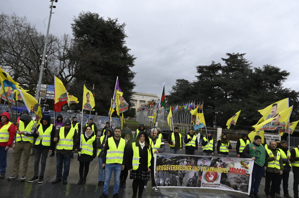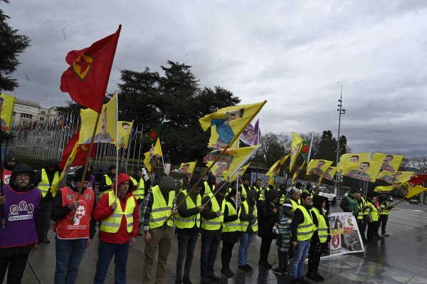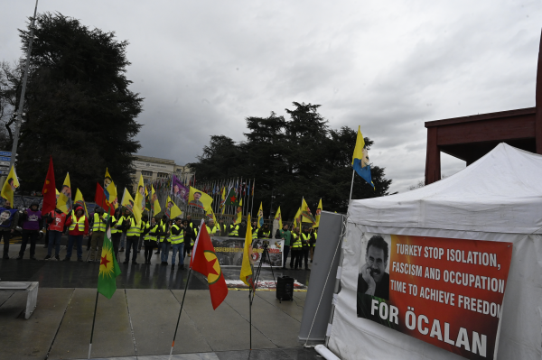 تجمع در مقابل دفتر سازمان ملل در ژنو سوئیس برای آزادی جسمانی رهبر خلق کورد عبدالله اوجالان همچنان ادامه دارد.