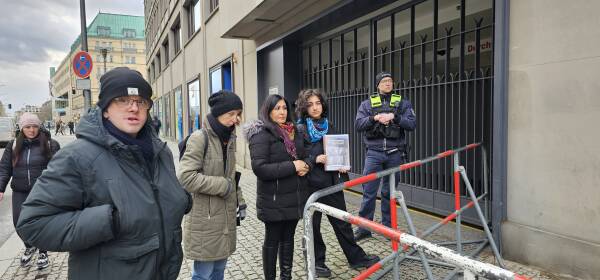 در سراسر این فعالیت شعار «سارا، روژبین، روناهی، ژن، ژیان، آزادی» سرداده شد. فعالین دسته گل سیاه را در مقابل کنسولگری فرانسه قرار دادند و درخواست کردند تا پرونده را تحویل مسئولین نمایند.