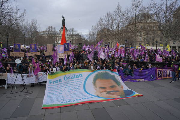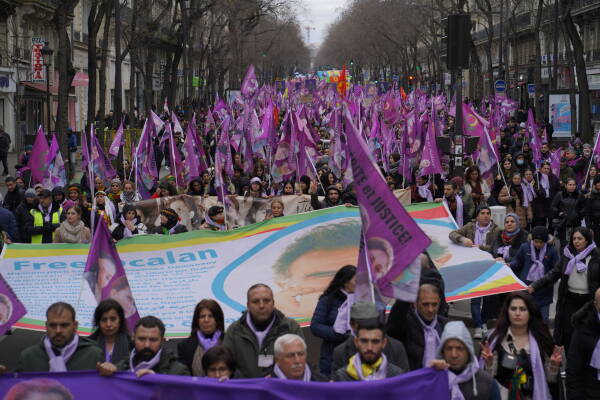 جمعیت از گاره ده نورده تا میدان ریپبلیک راهپیمایی کردند و پلاکاردهایی در باب آزادی جسمانی رهبر خلق کورد عبدالله اوجالان نشان دادند.
