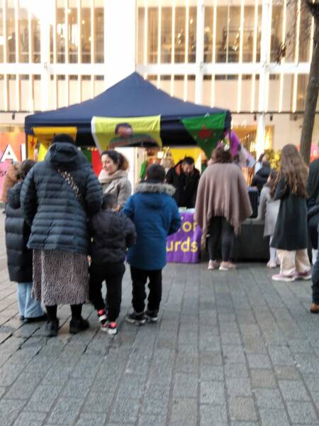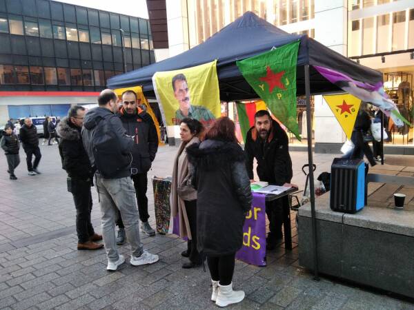 سید سوروچ، رئیس مشترک مجلس جامعه کورد در بریتانیا، گفت که آنها همچنین در غرفهها در مورد حملات اشغالگرانه دولت ترکیه به کوردستان به مردم اطلاعرسانی میکنند و گفت: «رهبر آپو میگفت صلح سختتر از جنگ است. ما سعی میکنیم بر این مشکل غلبه کنیم. ما معتقدیم که امید رهبری به صلح قطعاً موفق خواهد بود. همه مردم جهان باید تا دستیابی به ایدههای رهبر آپو برای صلح، دست به دست هم دهند. ما علاقه شدیدی دریافت کردیم و با ارسال کارت پستال به امرالی در حال گسترش صلح هستیم.»