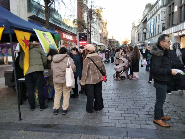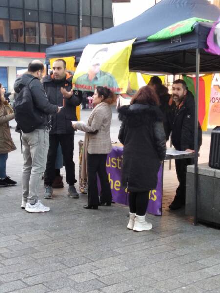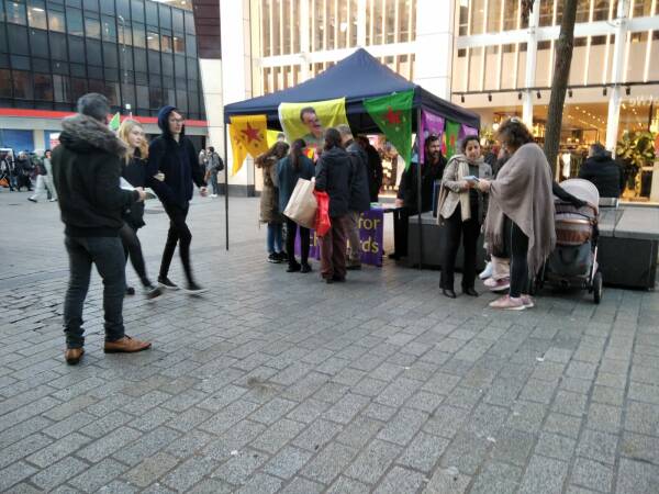 به عنوان بخشی از کمپین ارسال کارت پستال به امرالی، غرفههایی در خیابانهای شلوغ لیورپول برپا شد و نامههایی برای رهبر خلق کورد عبدالله اوجالان ارسال شد.