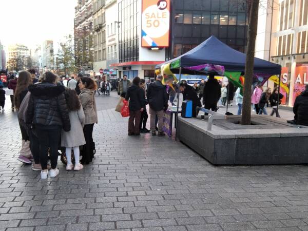 به عنوان بخشی از کمپین ارسال کارت پستال به امرالی، غرفههایی در مناطق شلوغ و پر تردد لیورپول برپا شد. غرفههایی که تحت رهبری مرکز جامعه کورد در لیورپول افتتاح شد شامل دفاعیات رهبر خلق کورد عبدالله اوجالان، بروشورهایی در مورد انزوای امرالی و کارت پستالهایی بود که برای ارسال به امرالی آماده شده بود. بازدیدکنندگان هم در مورد رهبر خلق کورد عبدالله اوجالان و هم از انزوا مطلع میشوند.