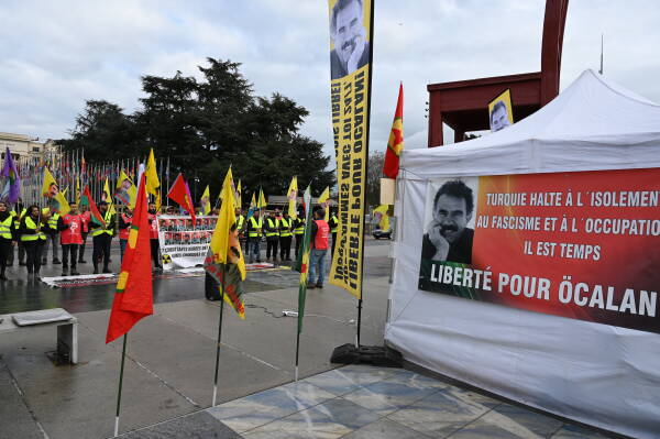تحصن برای آزادی رهبر پ ک ک عبدالله اوجالان در مقابل دفتر سازمان ملل در ژنو وارد دومین سال خود شد.