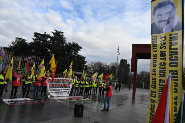 جمعیت ،سکوت سازمان ملل در برابر انزوای مطلق عبدالله اوجالان و تجاوز ترکیه را محکوم کردند. اردال آتاسوی، رئیس مشترک مرکز جامعه کردی ژنو (CDK) به نمایندگی از جمعیت سخنرانی کرد. آتاسوی از سازمان ملل خواست تا بر اساس قوانین خود علیه جنگ و جنایت در برابر بشریت عمل کند و گفت: 2 سال است که در مقابل سازمان ملل برای پایان دادن به انزوای رهبرمان و آزادی او اعتراض می کنیم. جلسه را آغاز کردیم. ببینید امروز انزوا به بالاترین حد رسیده و به حملات نسل کشی علیه مردم ما تبدیل شده است.» آتاسوی که به انزوای اوجالان واکنش نشان داد، اینگونه صحبت کرد: "معلوم شد که در آخرین سفر CPT به امرالی، با رهبر ما ملاقات نشد. این تحولات نگرانی ما را در مورد امنیت و جان رهبرمان حملات نسل کشی افزایش می دهد. نسل کشی رژیم ترکیه در کردستان ادامه دارد." پس از سخنرانی، جمعیت شروع به تحصن کردند. جمعیت با سر دادن شعارهایی این انزوا را محکوم کردند.