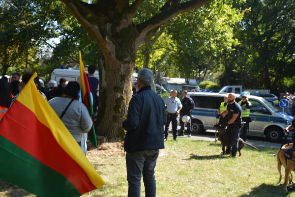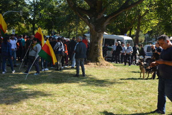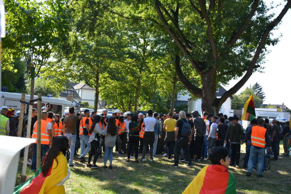 جوانان کرد ساکن آلمان با شعار "علیە فاشیزم بە پاخیز، رهبر آپو را آزاد کن" این راهپیمایی را تدارک دیدند.