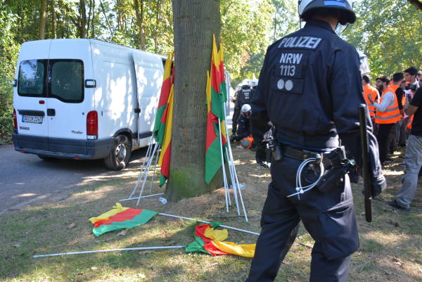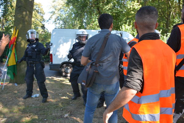 جوانان کُرد پس از چند ساعت از آغاز راهپیمایی هدف یورش نیروهای پلیس آلمان قرار گرفتند و دستکم ١٠ جوان کُرد را بازداشت کردند. اعلام شد که تعدادی از جوانان در یورش پلیس زخمی شدهاند.