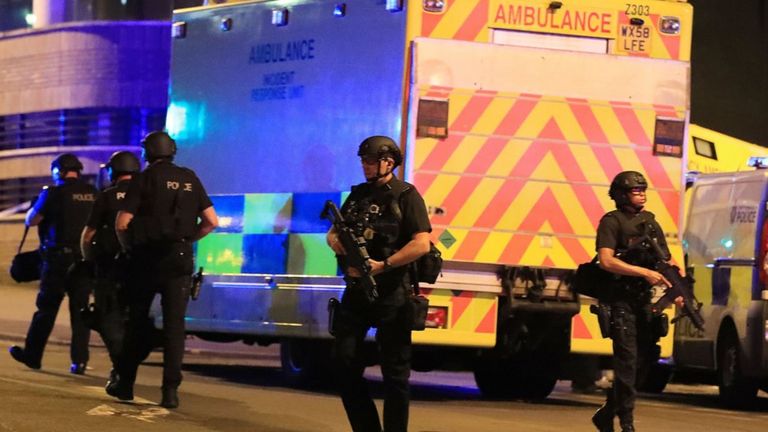 هنوز مشخص نیست که دقیقاً یک یا دو انفجار روی داده است اما گفته میشود که هزاران نفر پس از انفجارها پا به فرار گذاشتهاند که باعث هرجومرج وسیع در سالن کنسرت شده است. با این حال پلیس انگلیس گفته که توانسته است یک وسیله انفجاری دیگر را هم در ازراف سالن کشف کند و مردم و خبرنگاران را از آن منطقه دور کرده است.