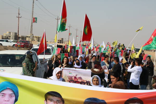 در این میتینگ نمایندگان جنبش آزادی زنان ایزدی (TAJÊ)، حزب آزاد و دمکراتیک ایزدیها (PADÊ) و مجلس خودمدیریتی دمکراتیک شنگال سخنرانی کردند.