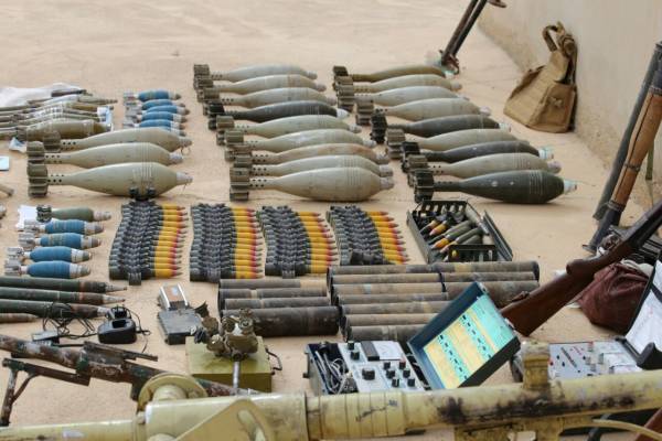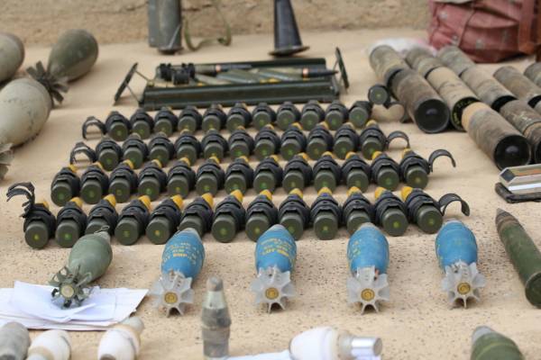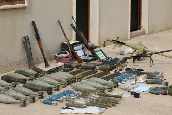 یک دستگاه خوردی زرهی مدل هامَر، یک دستگاه خودروی نظامی مدل رئو- (زیل)، یک دستگاه پیکاپ، یک قبضه آر.پی.جی، چند قبضه موشک ضدتانک لاو (ساخت ترکیه)، یک قبضه خمپاره ۱۲۰ و چندین راکت آن، یک قبضه کلاشنیکف بههمراه ۴ جعبه مهامت آن، یک دستگاه کاتیوشل به همراه ۷۶ راکت، ۲ سلاح سوءقصد (۲۳ میلیمتری)، ۱۰۰ گلوله موشک، ۲ قبضه دوربین دید در شب، دو جدول مختصات خمپارهای، ۲ دستگاه الکترونیکی با کاربرد جنگی، یک دستگاه لبتاب، چند دستگاه گوشی موبایل و همچنین مقادیر دیگری مهمات مختلف
